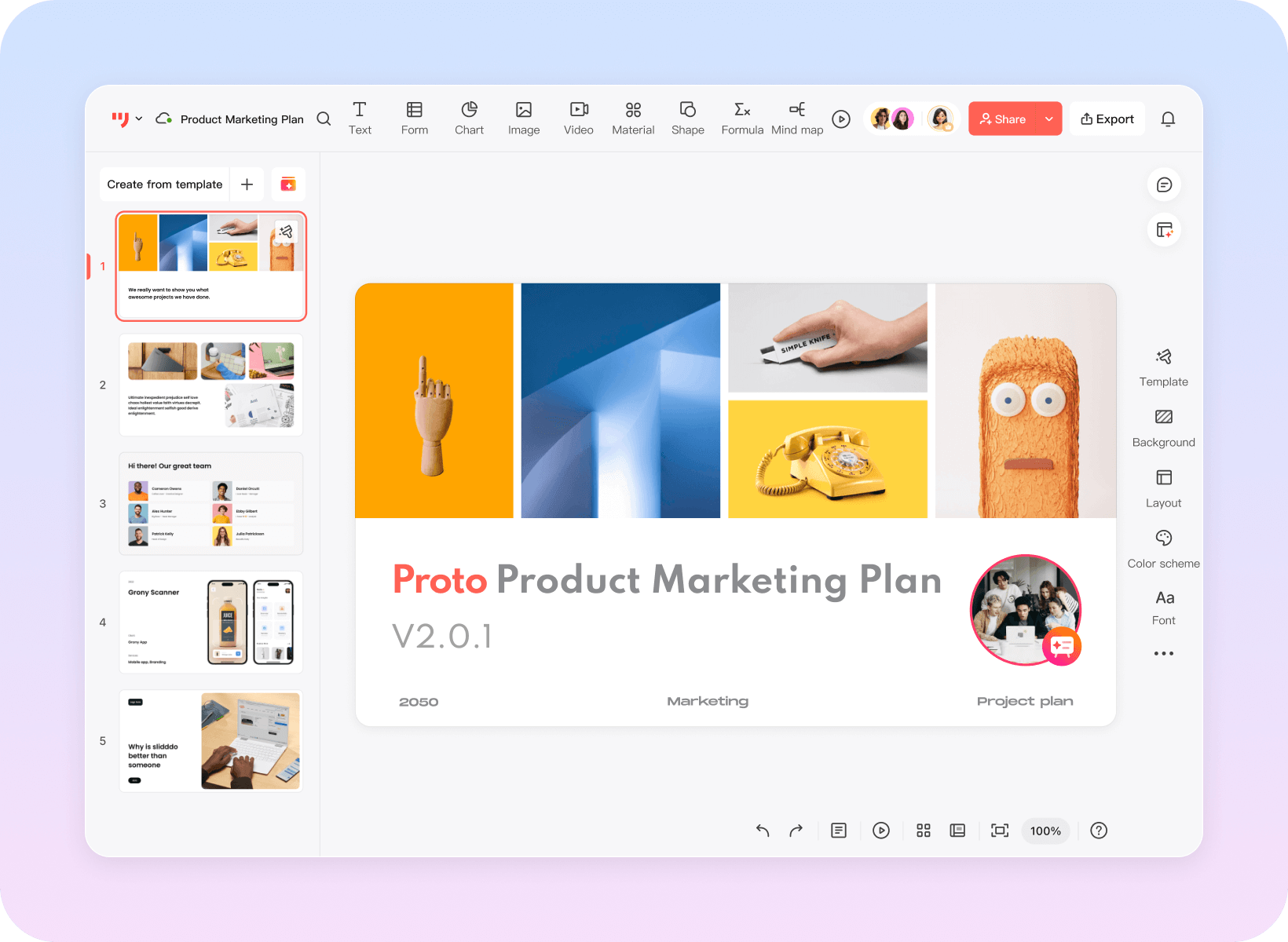 - · One-click export to PPTX format, supporting online collaboration and commenting